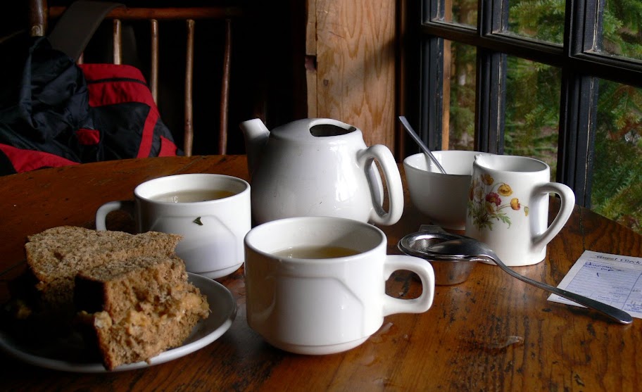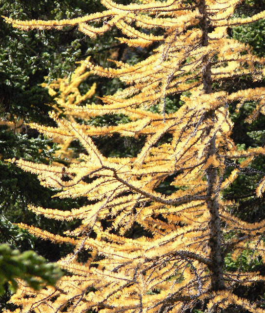 It starts to rain. We saw the rainbow over the larch trees. The rainbow was brief, it seems to be for us two only. :o)