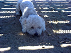 We put him off-leash for five minutes in Hensley lake beach, what a small/dry lake! He was dirty, as expected, in less than one minute. He was going to run away with other interesting people, like those with boats, but he could not resist all the sticks we throwing up to him, and got lured back and caught.